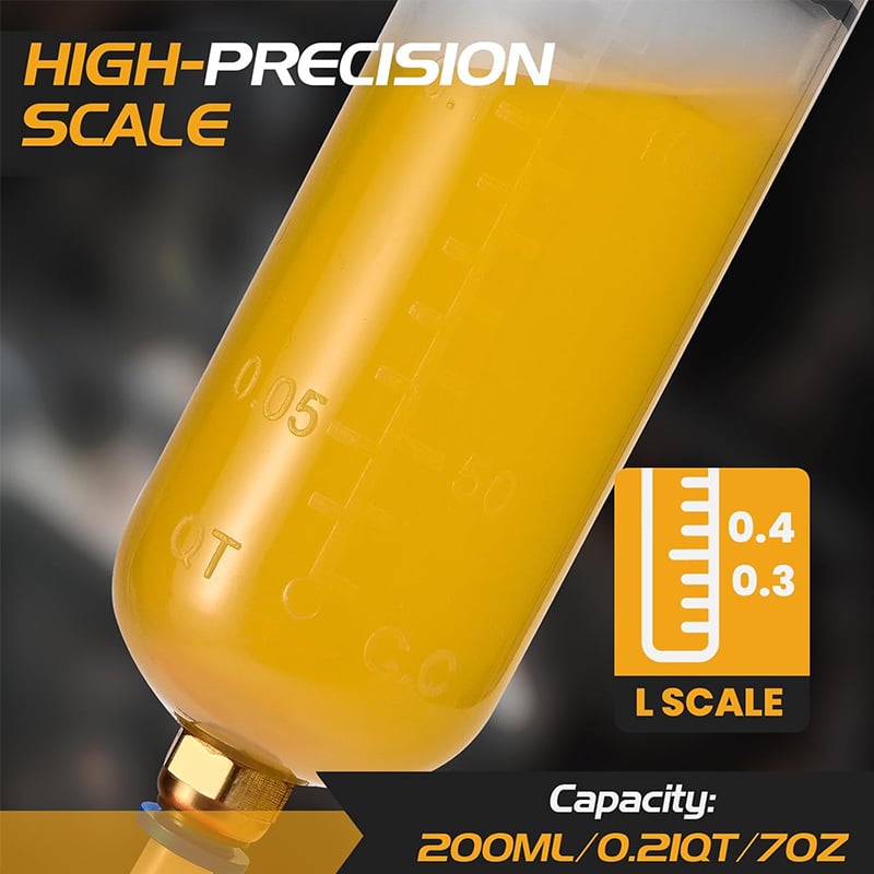 Smooth Fluid Delivery - Syringe style fluid excluder comes with 2 extension tubes. When connected, they are long enough to reach hard-to-reach locations for extracting and replacing transmission fluid, power steering fluid, gear oil, antifreeze and brake fluid.