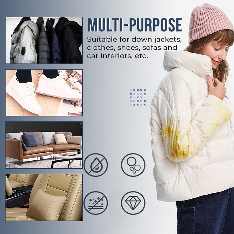 Multi-purpose: Widely used in down jackets, clothes, shoes, sofas, and car interiors, etc. It is also suitable for emergency preparations for sudden stains caused by outdoor, convenient and compact design, convenient to carry.