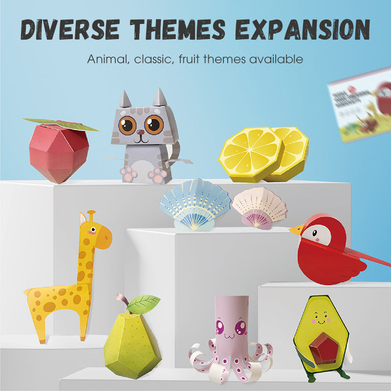 ENGAGING 3D ORIGAMI EXPERIENCE:The 3D Handmade Origami Book offers a captivating hands - on activity. With three sets totaling 49 unique patterns, it brings animals, fruits, and classic shapes to life in 3D. This not only provides hours of entertainment but also enhances children's creativity, fine motor skills, and spatial imagination as they transform flat paper into detailed 3D models.